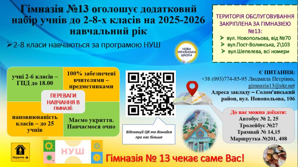 Гімназія-інтернат №13 - це навчальний заклад нового типу!