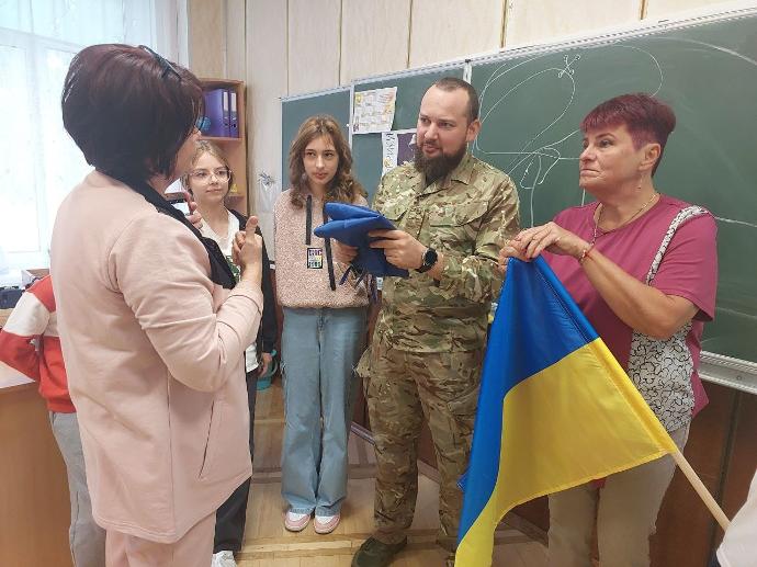 Відбулася очікувана зустріч учнів 7-Б класу з Лапанем Іваном Андрійовичем, воїном 116 окремої бригади територіальної оборони на позивний - «Професор». Під час зустрічі дітей зацікавила розповідь військового про модифікацію дронів-розвідників. До початку повномасштабного вторгнення Лапань І.А. був улюбленим викладачем студентів КНУБА, заступником декана. В рамках зустрічі діти додали, що оператори дронів - справжні джедаї.